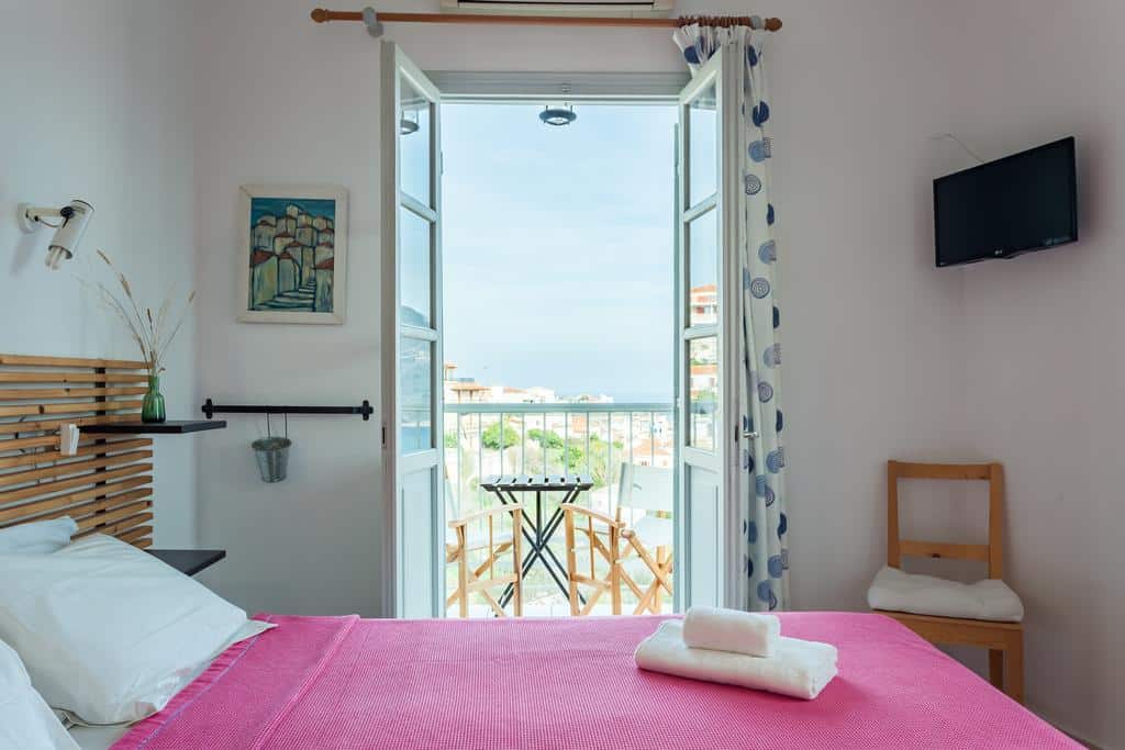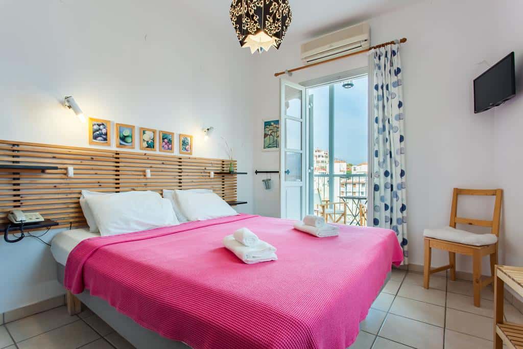 The well-tended rooms of the Hotel, on Skopelos Island, offer air conditioning, a fridge, and a TV. All rooms have a private balcony, some with a view of the scenic old town and the Aegean Sea.