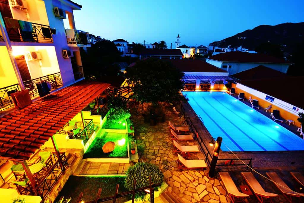Ionia Hotel is in the centre of picturesque Skopelos Town. It offers rooms with air conditioning and a balcony overlooking the flowered garden. The hotel also features a swimming pool and a sun terrace. Moreover, Hotel Ionia was renovated completely in 2007. There are 47 standard rooms.