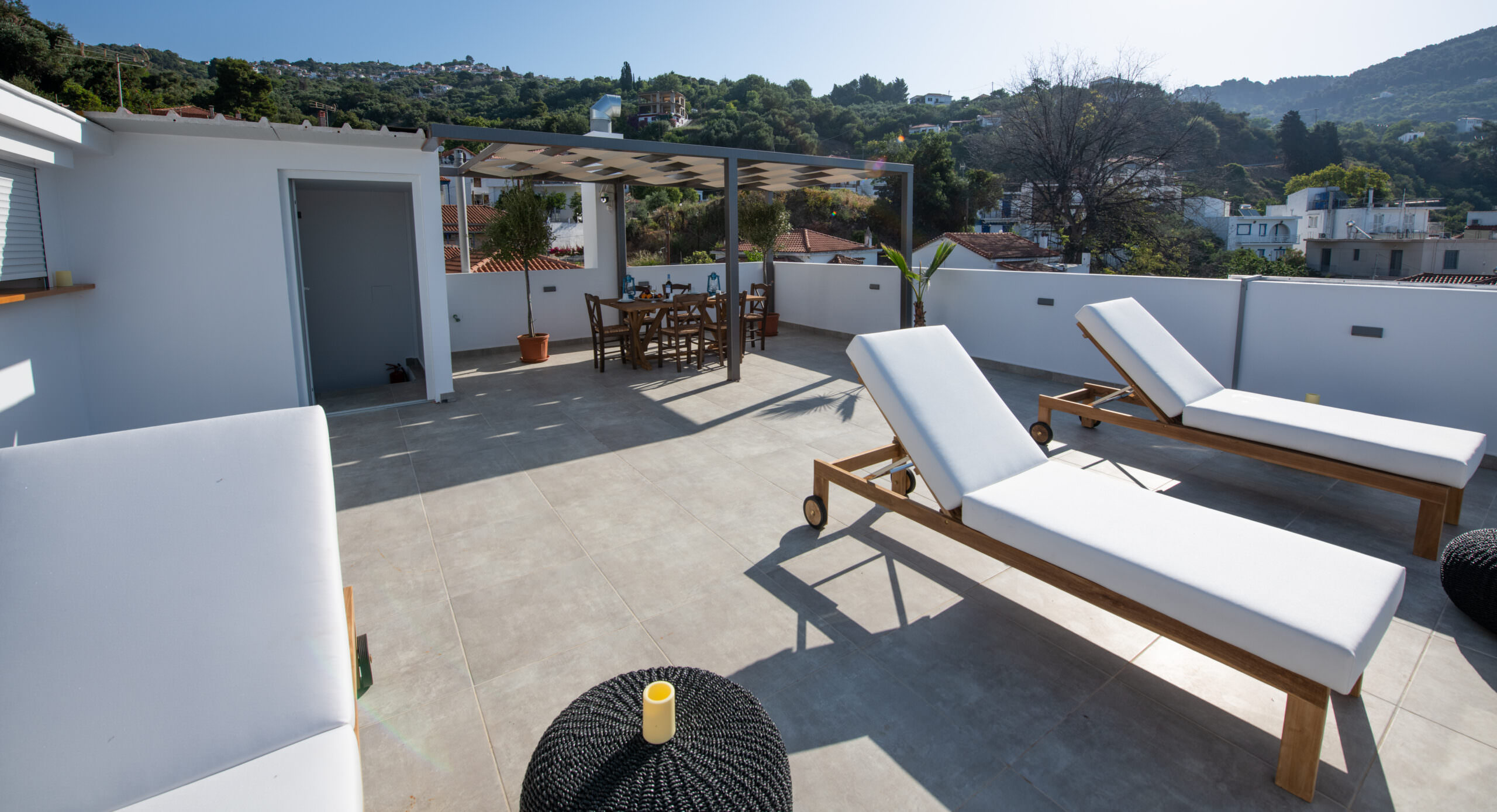 The sophisticated Flisvos Beachfront Apartments, fully renovated in 2023, are located in the enchanting and picturesque fishing village of Loutraki Glossa, situated above the namesake Flisvos seafood tavern on the idyllic island of Skopelos.