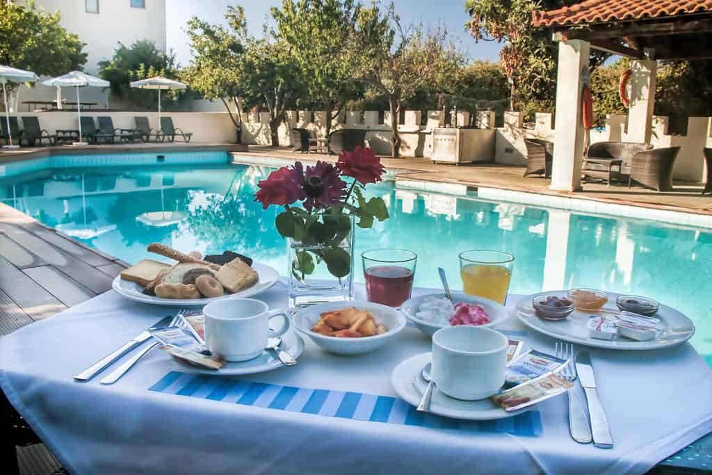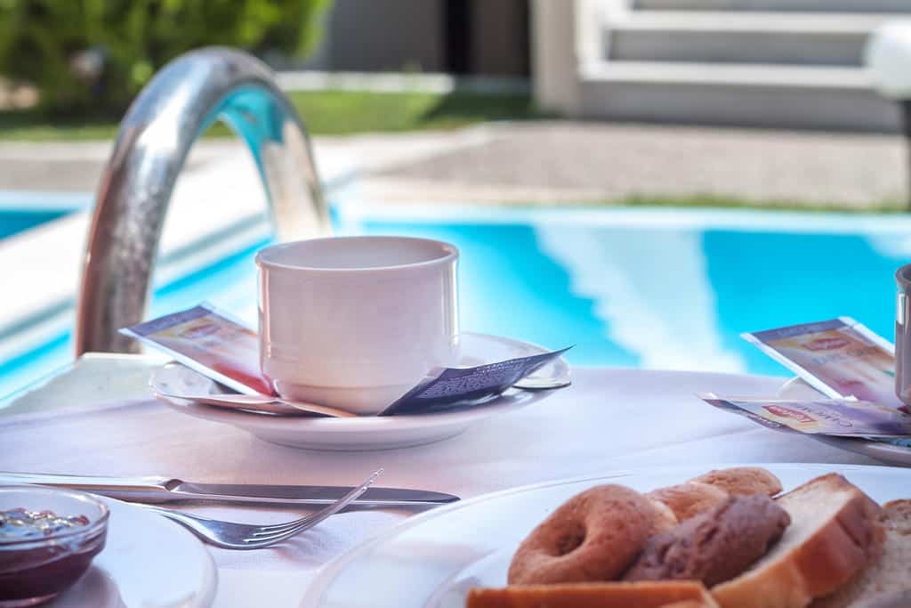 At the restaurant of Hotel Rigas, on Skopelos island, you can enjoy a rich Greek breakfast made with local products and dinner. There you have the chance to taste traditional flavors such as cheese pie and many sweets made with plums and honey. Moreover, the pool bar and snack bar serve light meals and coffee.