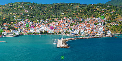 You must activate javascript to visualize the Virtual Tour : Skopelos Town 360º Guide (Virtual tour by www.littleplanet.gr).