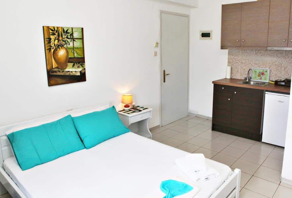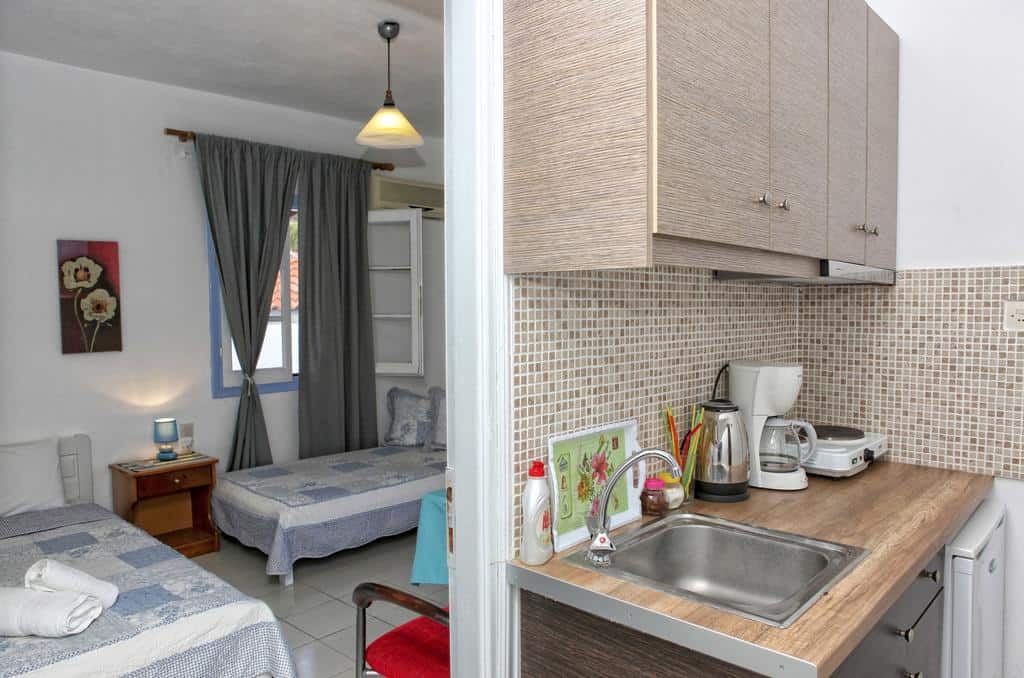 On Panormos beach, there are several traditional tavernas and restaurants, where you can enjoy your meal. Additionally, in Panormos, there are supermarkets, a bakery, and seasonal shops. The bus stop is close to the studios.