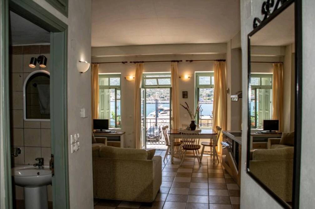 Balconies of the apartment overlook the majestic sea, the harbour and the Aegean sea. Furthermore, all balconies feature outdoor furniture. So, there are by far the ideal spots to enjoy breakfast or even a summer cocktail under the Greek sun.