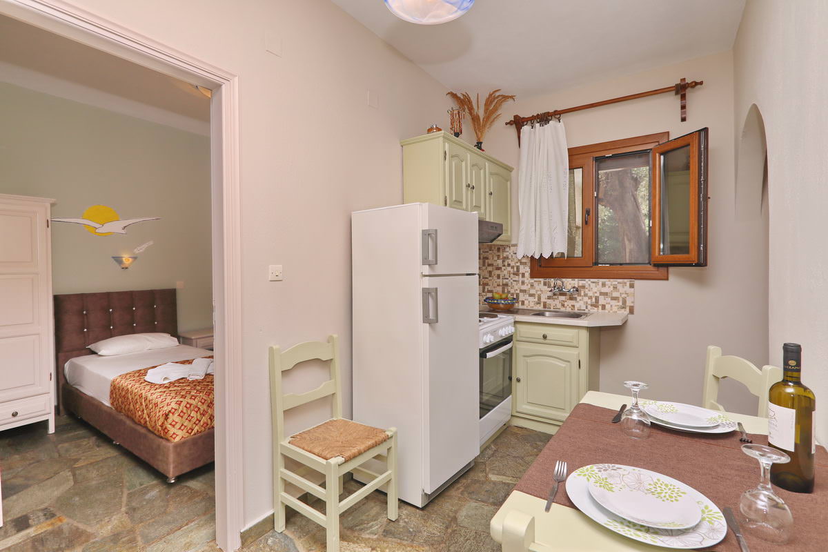 Niki Studios in Skopelos offers full equipment. They are just a 3-minute walk from Panormos, the most renowned beach on our island.