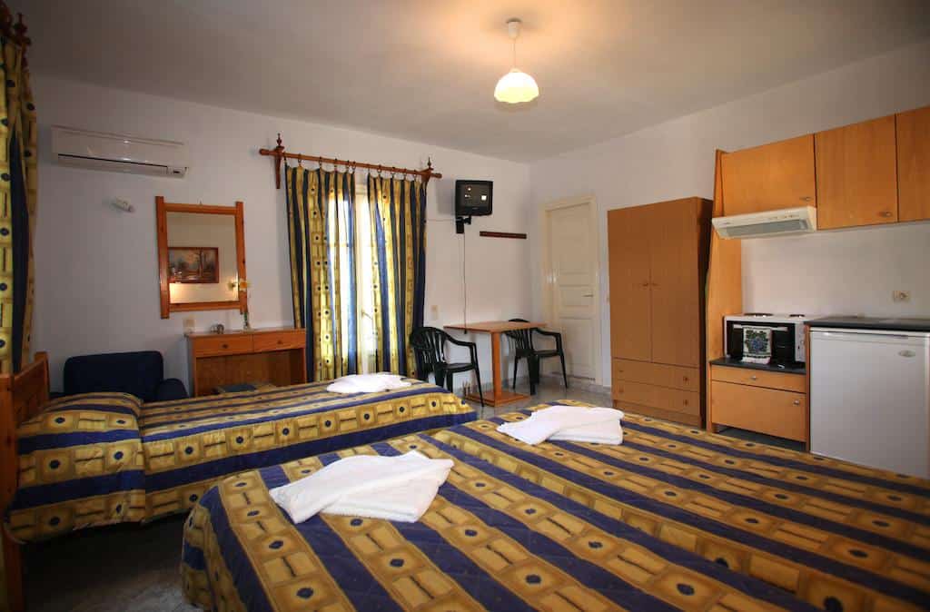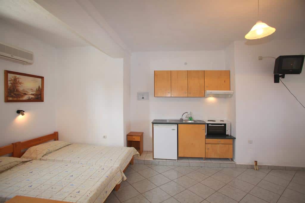 Furthermore, in all rooms and studios, there is a terrace or balcony with furniture, a TV, and a fridge. Some accommodation comes with a kitchenette with a dining table and a small oven with cooking hobs. Breakfast is also available.