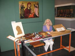 Anthi Valsamaki was born in Athens, and she says, “I consider myself an illustrator and not a hagiographer, a word utopian, in relation to the modern rules of our life. » She graduated from Athens College, studied at the Athens School of Fine Arts and attended the School of Fine Arts next to Panayiotis Tetsis and Yiannis Moralis and participated in the hagiography workshop of Konstantinos Xinopoulos She also attended scenography, decoration, and graphic arts courses at the Vakalo School. For many years, she has been teaching the course “Hagiography Technique – Theory and Practice” in various institutions. Also, she is responsible for the Hagiography Workshop and the Manuscripts of the Institute of Islamic Art at the Benaki Museum. She was General Secretary of the Friends of the Gennadius Library and of the Friends of the Benaki Museum. While she has painted many temples abroad and of course in Greece. Mrs. Valsamaki has participated in many conferences and has given a number of thematic lectures in Greece and abroad. Her writing activities include a large number of books on the art of Byzantine Hagiography. In 1992 Anthia Valsamaki donated to the Municipality of Skopelos her ancestral home. She participated in the organization and operation of the Folklore Museum, which has been housed there since. Since the 1980s she has helped to promote and spread the local tradition through the organization of educational and cultural activities, conferences, and recordings of the cultural heritage of the island. Particularly important is her contribution through the establishment (1994) and operation of the Society of Peparinthian Studies. As well as its participation in the creation of the Mediterranean Photography Center in 1997.Facebook: facebook.com/anvalsamaki