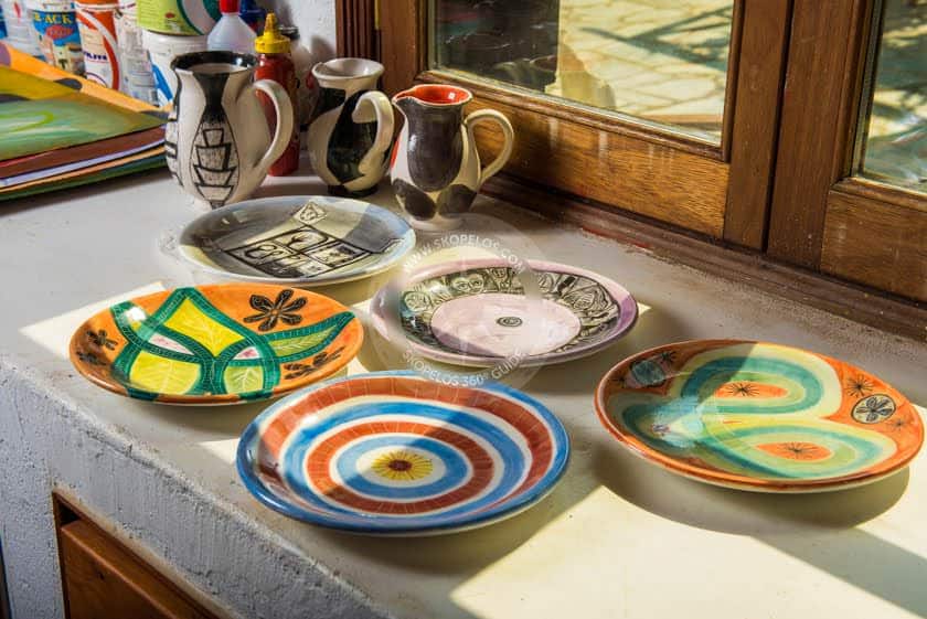 Tom and Isabel Dempsey are Skopelos-based artists who teach and exhibit locally, fostering the island's vibrant art scene.