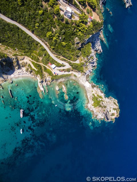 To reach the specific beach of Skopelos you will follow the dirt road that starts from the church of Panagia. (You’ll meet it just before you reach Ai Giannis Kastri). There you will park your car. Walking along this first dirt road you will find the path that will take you to Skopelos Spilia Beach. It’s a wonderful route through beautiful natural scenery. The area is suitable for hiking.
