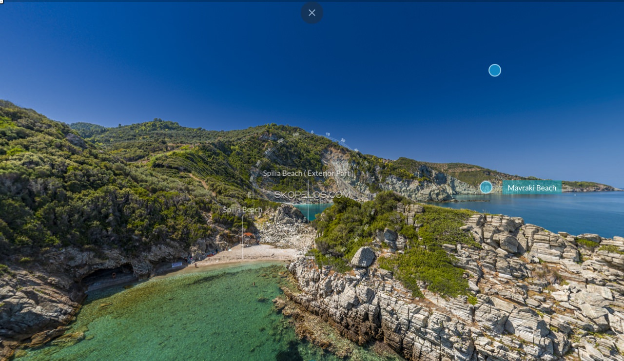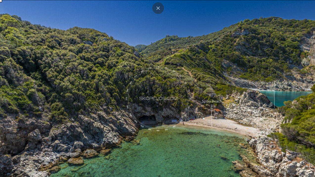 Spilia Beach Skopelos will amaze you with the clarity of the crystal clear waters and the pine trees that are almost rooted in the seawater offering their shade. The picturesque church of Agios Ioannis, Kastri, towers high, and as we go downhill we meet the small but enchanting beach of Spilia. Enjoy the unlimited view of the Aegean Sea. The beach is on the north side of Skopelos.