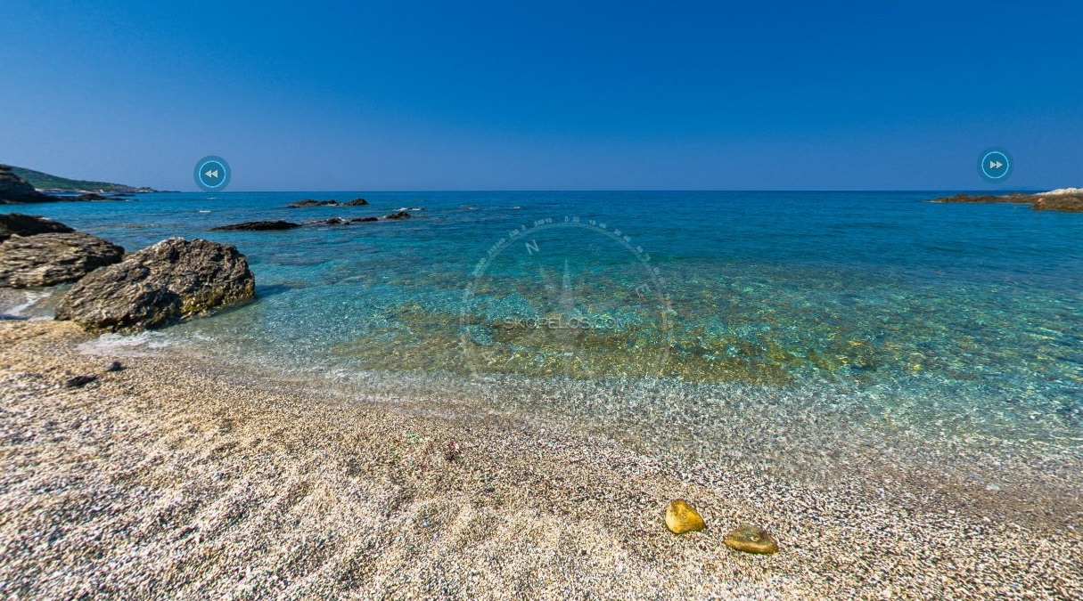 The waters – like most of the beaches of Skopelos – are crystal clear and turquoise, while the beach has fine pebbles.