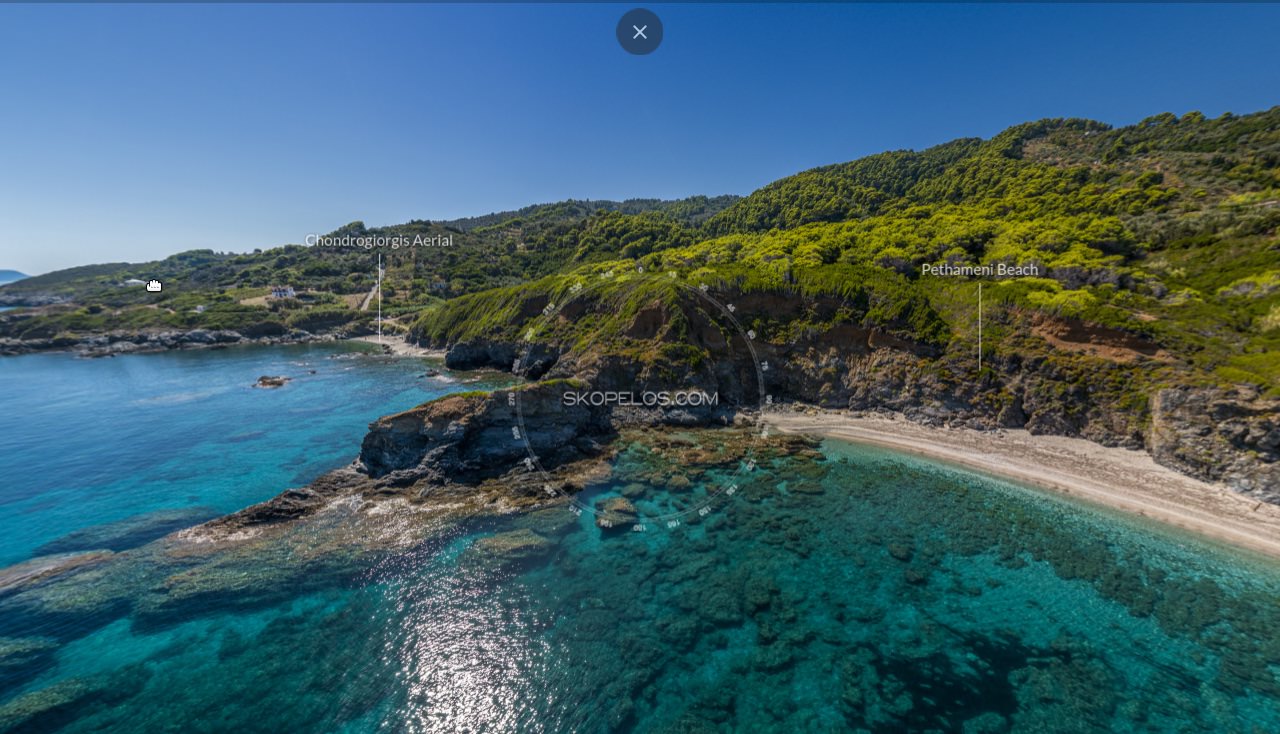 The beach of Pethamenis is only 6 km from Glossa Village. By car, the distance is covered in 20 minutes. From the port and Skopelos Town, the distance is about 35 km. By car, the distance is covered in 45-50 minutes.