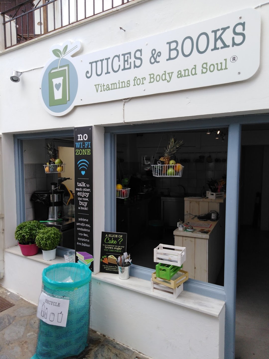 Juices and Books is a different kind of cafe and bookstore. This alternative store is situated in the port of Skopelos Town.