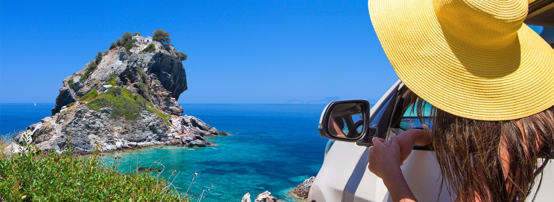 Rent a car to discover the beauties of the hidden treasures of Skopelos island.