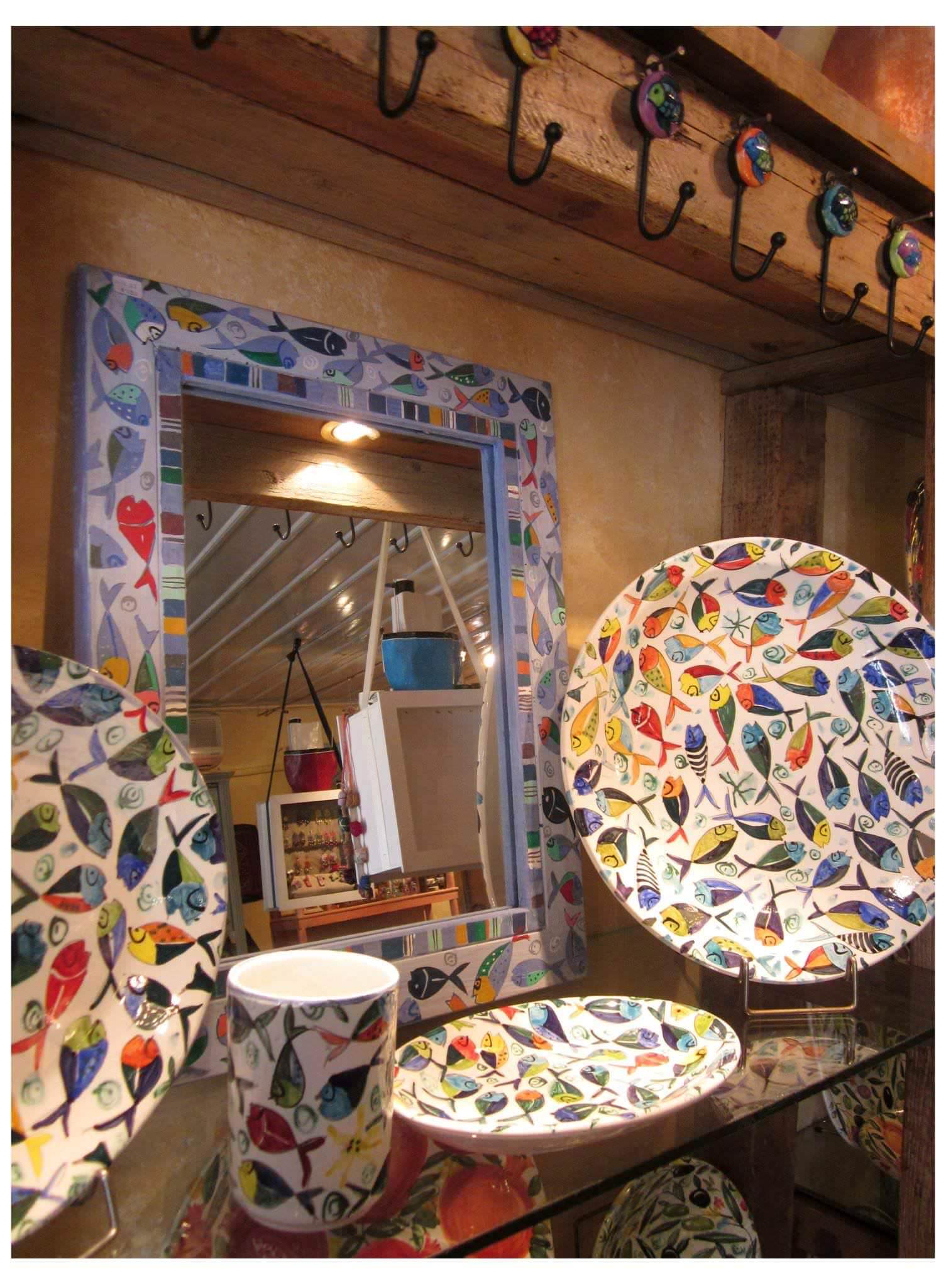 At the store, there is a variety of excellent crafts. Amazing ceramic crockery, handmade leather bags, decor items of many colors as well as inspired jewelry, and colorful decor items. Ξll the pieces have a strong Greek element. There are items created byΒ artists all around Greece.