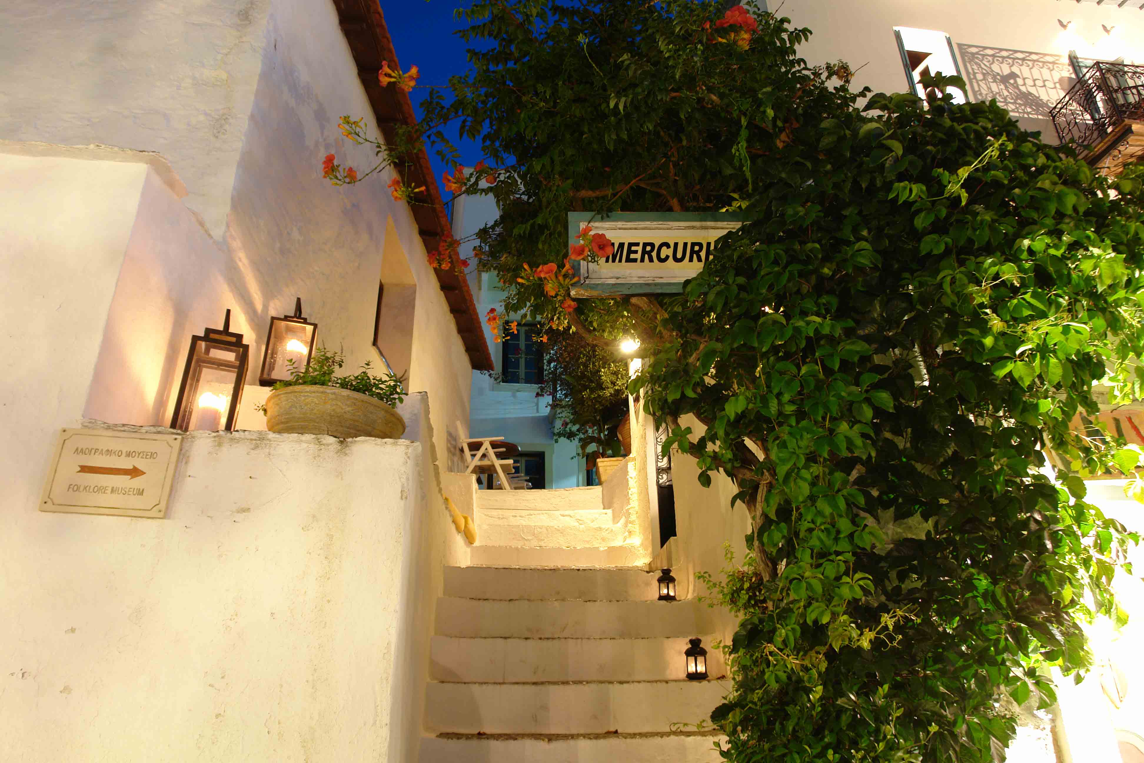 Επιπλέον, η τοποθεσία του μπαρ είναι επίσης ιδανική, καθώς από τη βεράντα του Mercurius, έχετε θέα στο παλιό λιμάνι της Σκοπέλου.