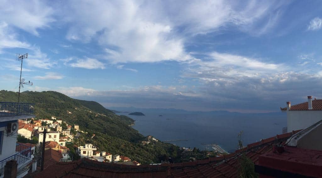 Η θέα που προσφέρει το καφέ Πλατεία, στην Γλώσσα της Σκοπέλου, είναι απολαυστική. Ειδικά στην βεράντα του καφέ απολαμβάνετε το απέραντο γαλάζιο του Αιγαίου Πελάγους.