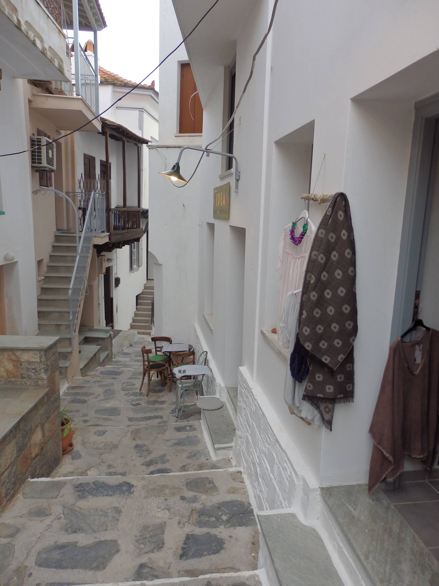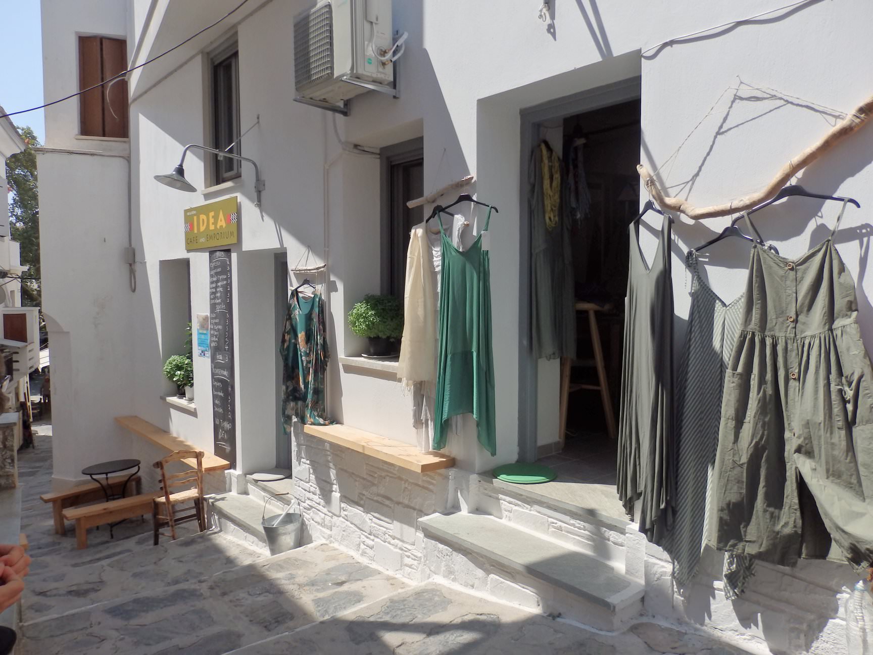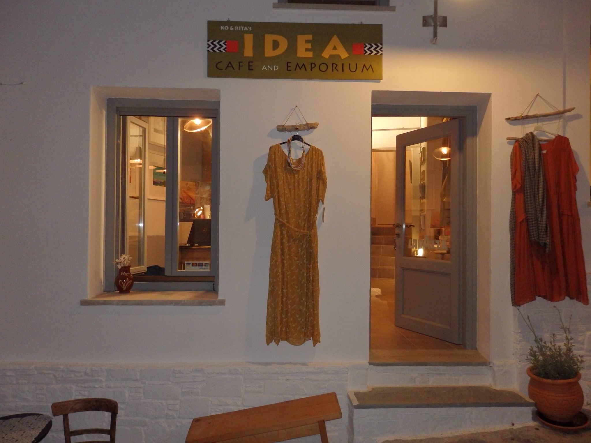 Η idea και το emporium cafe σκόπελος βρίσκονται σε ένα εκπληκτικό γραφικό σοκάκι. Μπορείτε εύκολα να καθίσετε σε μία μαξιλάτα και να απολαύσετε τον πρωινό σας καφέ, τον απογευματινό σας καφέ ή ένα βραδινό ποτό. Ταυτόχρονα, δείτε την υπέροχη συλλογή ρούχων και αξεσουάρ για να αγοράσετε κάτι καινούργιο στις διακοπές σας.