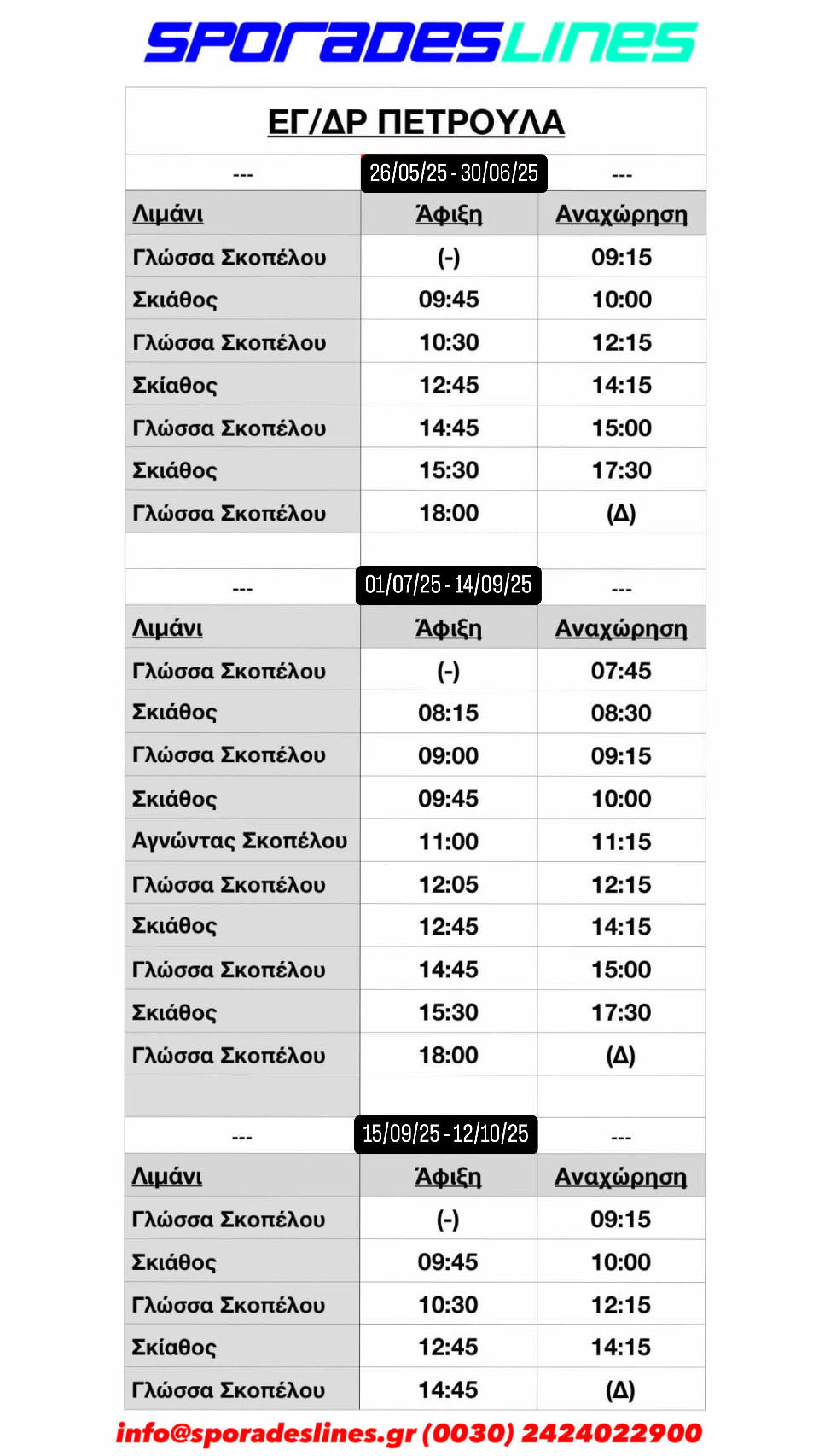Διαδρομές και Πρόγραμμα του Πλοίου Πετρούλα Σκόπελου