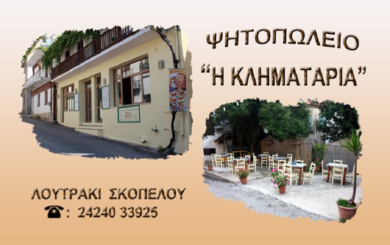 Η Ταβέρνα Grill House Κληματάρια βρίσκεται στο Λουτράκι, το λιμάνι κάτω από το χωριό της Γλώσσας. Είναι ένα φιλικό μέρος για να απολαύσετε αυθεντικές ελληνικές γεύσεις σε μια χαλαρή ατμόσφαιρα. Οι ιδιοκτήτες σας υποδέχονται ζεστά και η εξυπηρέτηση είναι γρήγορη και προσεγμένη.