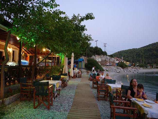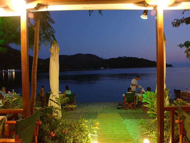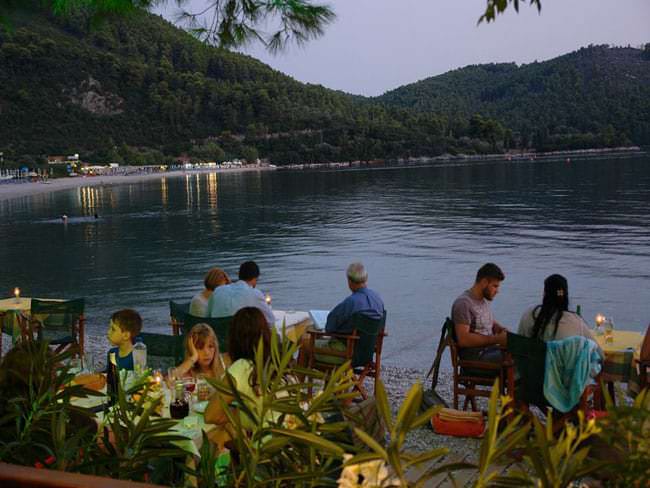 Στο Σκόπελος Εστιατόριο Λιναράκια, στην παραλία Πάνορμος της Σκοπέλου, θα απολαύσετε το γεύμα σας στην όμορφη βεράντα του εστιατορίου με θέα την καταγάλανη θάλασσα ή και στα τραπέζια πάνω στην παραλία.