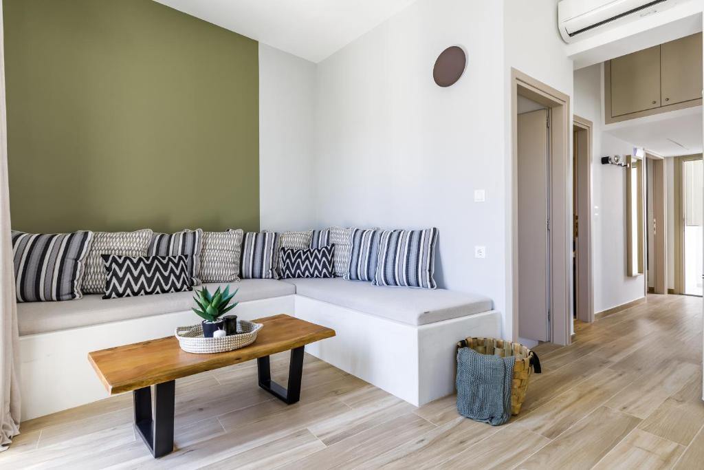 Αυτό το κατάλυμα στη Σκόπελο διαθέτει δύο υπνοδωμάτια με διπλά κρεβάτια, δύο μπάνια, φωτεινό καθιστικό και πλήρως εξοπλισμένη κουζίνα με σύγχρονες συσκευές και πλυντήριο ρούχων. Οικογένειες ή παρέες φίλων θα εκτιμήσουν την άνετη διαρρύθμιση και τις προσεγμένες παροχές, όπως τρία κλιματιστικά, ανεμιστήρες οροφής, smart TVs και δωρεάν WiFi σε όλους τους χώρους.