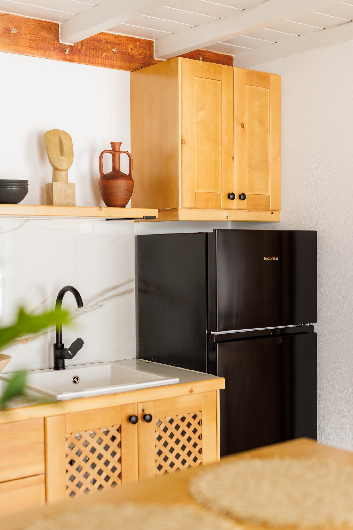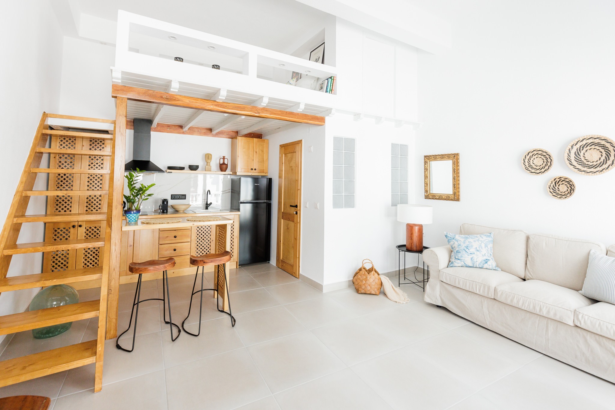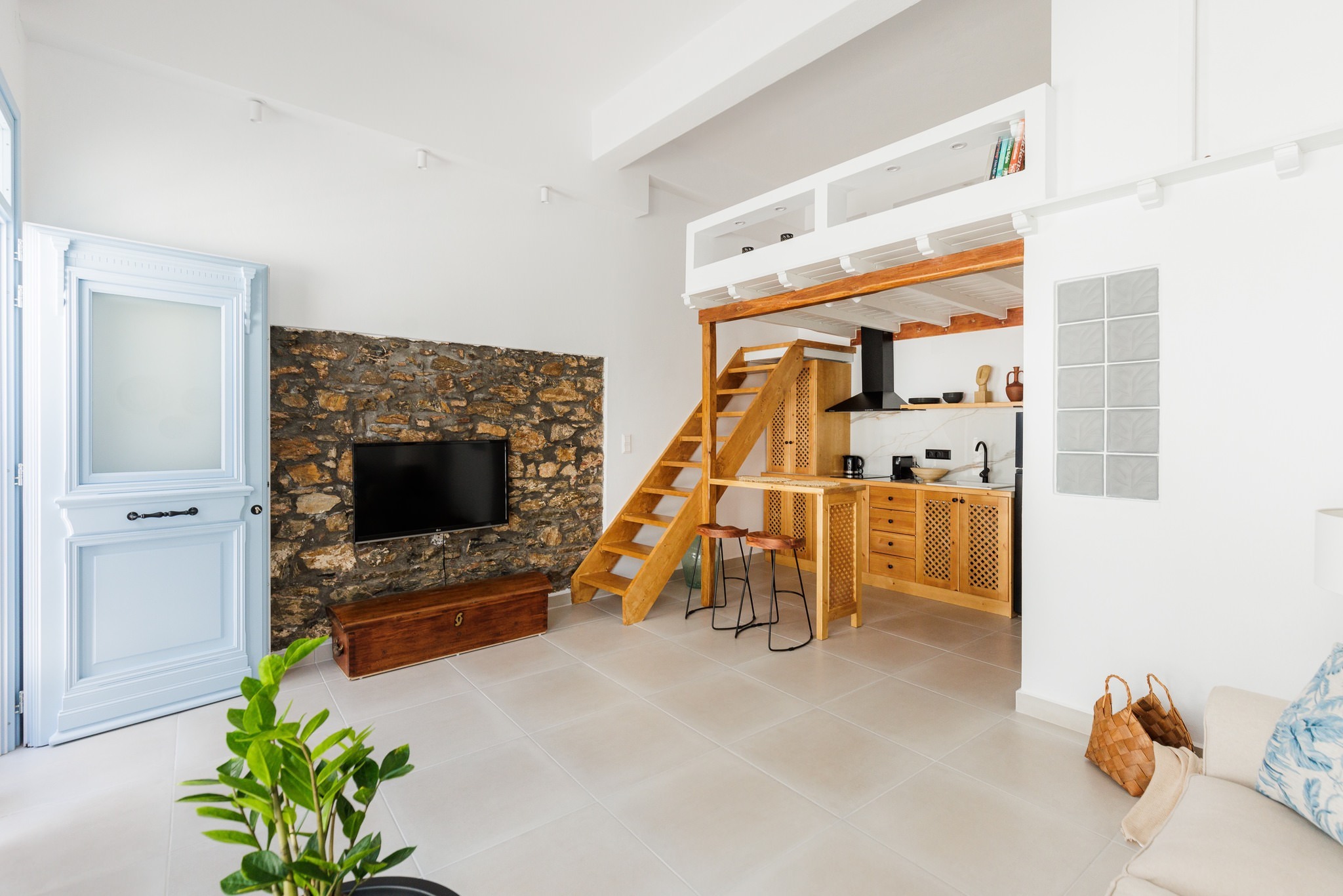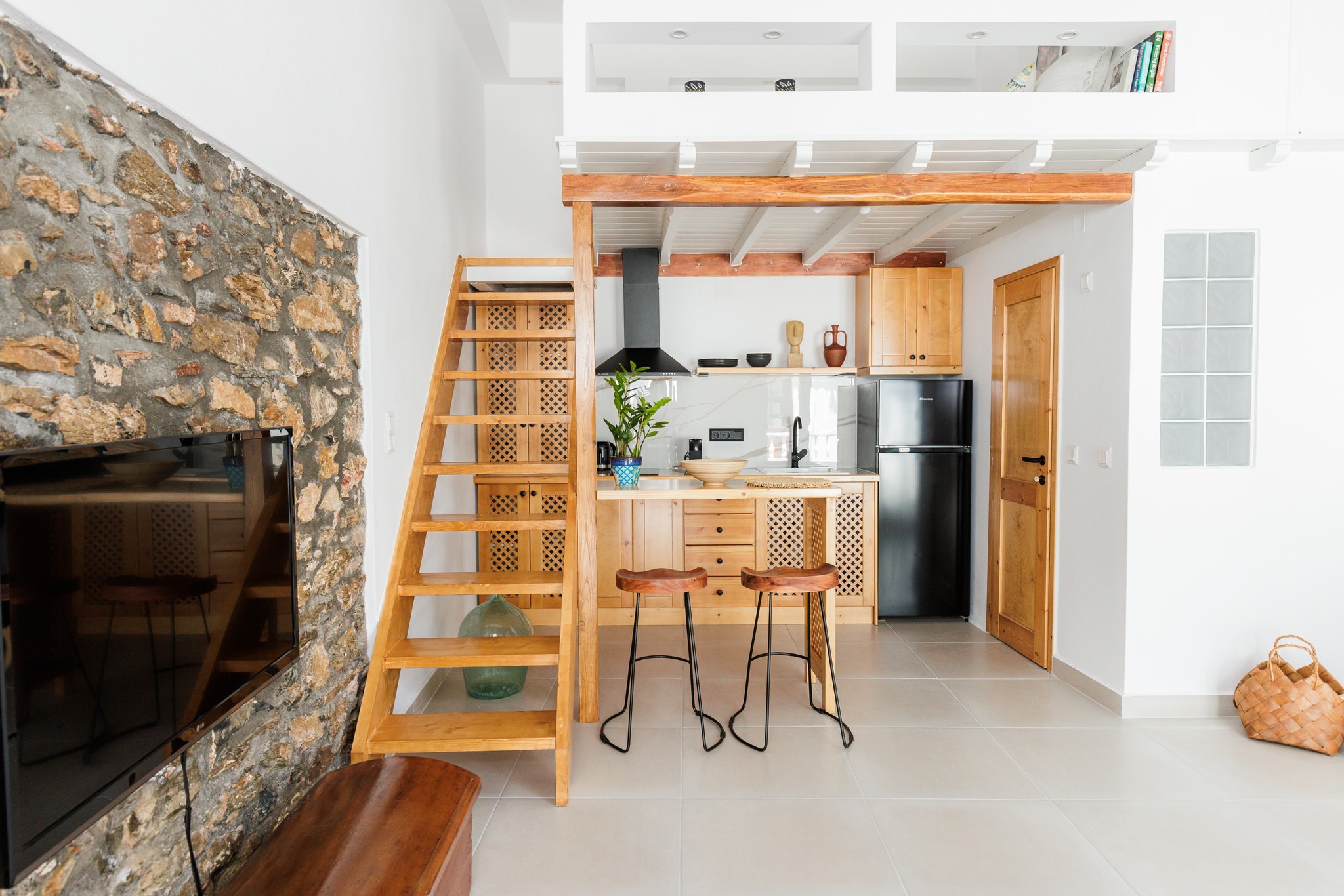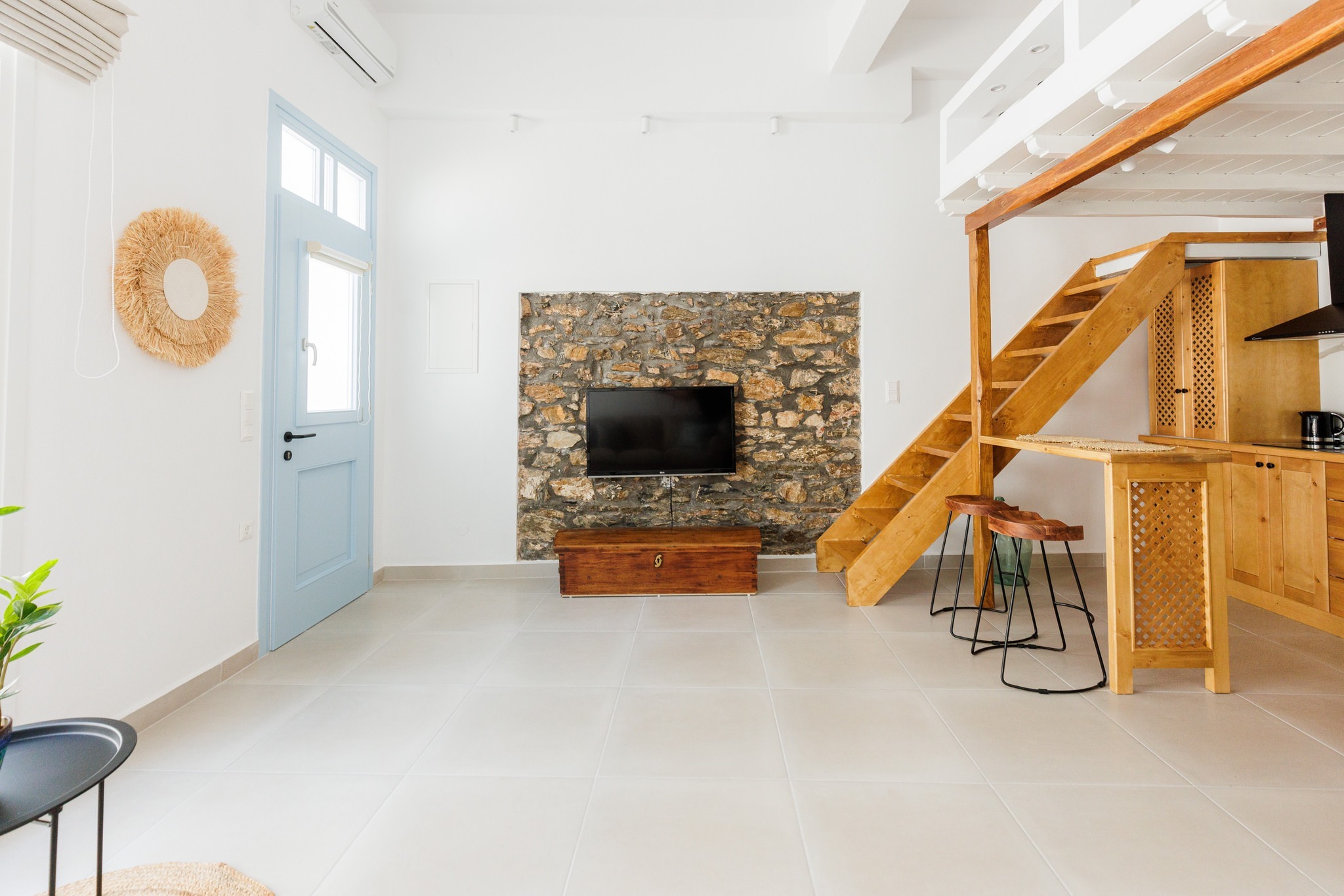 Το στούντιο των 34 τ.μ. ανακαινίστηκε πλήρως το 2023. Στο ισόγειο υπάρχει φωτεινός χώρος καθιστικού, μικρή κουζίνα πλήρως εξοπλισμένη με φούρνο, ψυγείο και καφετιέρα, καθώς και μοντέρνο μπάνιο με ντους. Εσωτερική σκάλα οδηγεί στον επάνω όροφο, όπου υπάρχει διπλό κρεβάτι που προσφέρει άνεση και ξεκούραση.