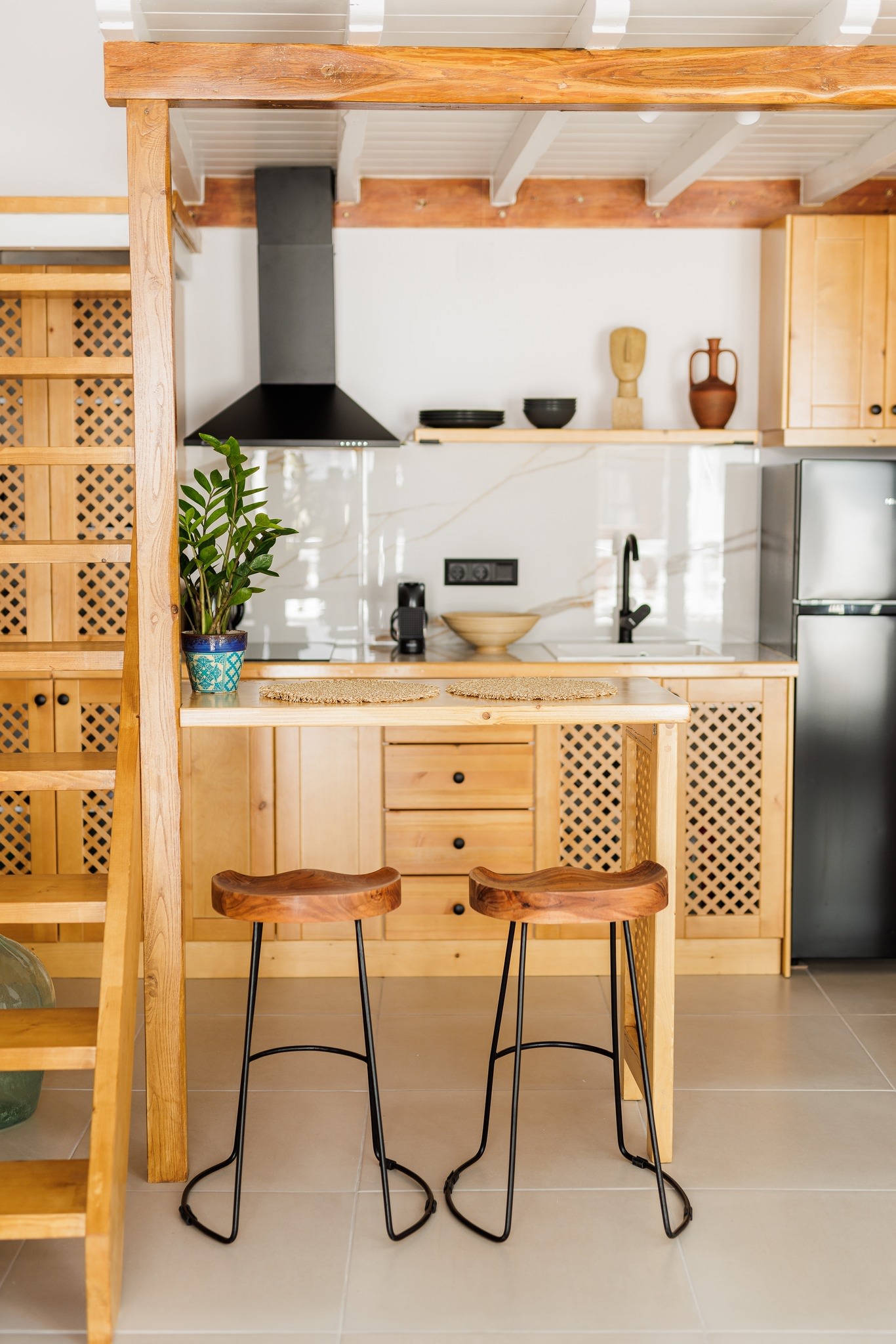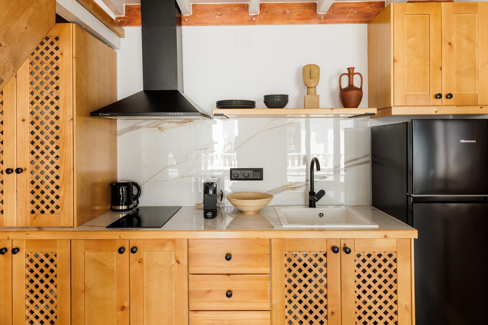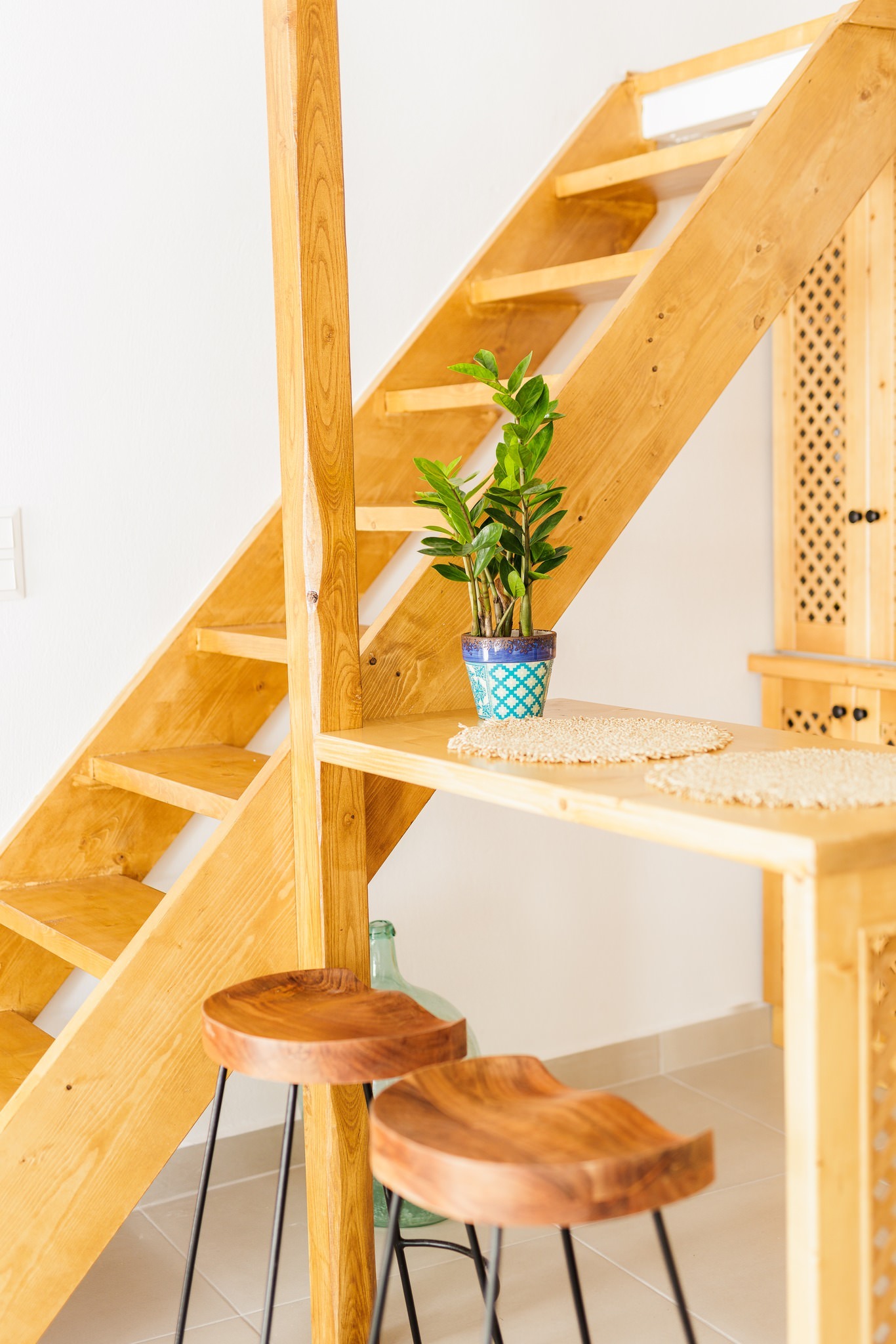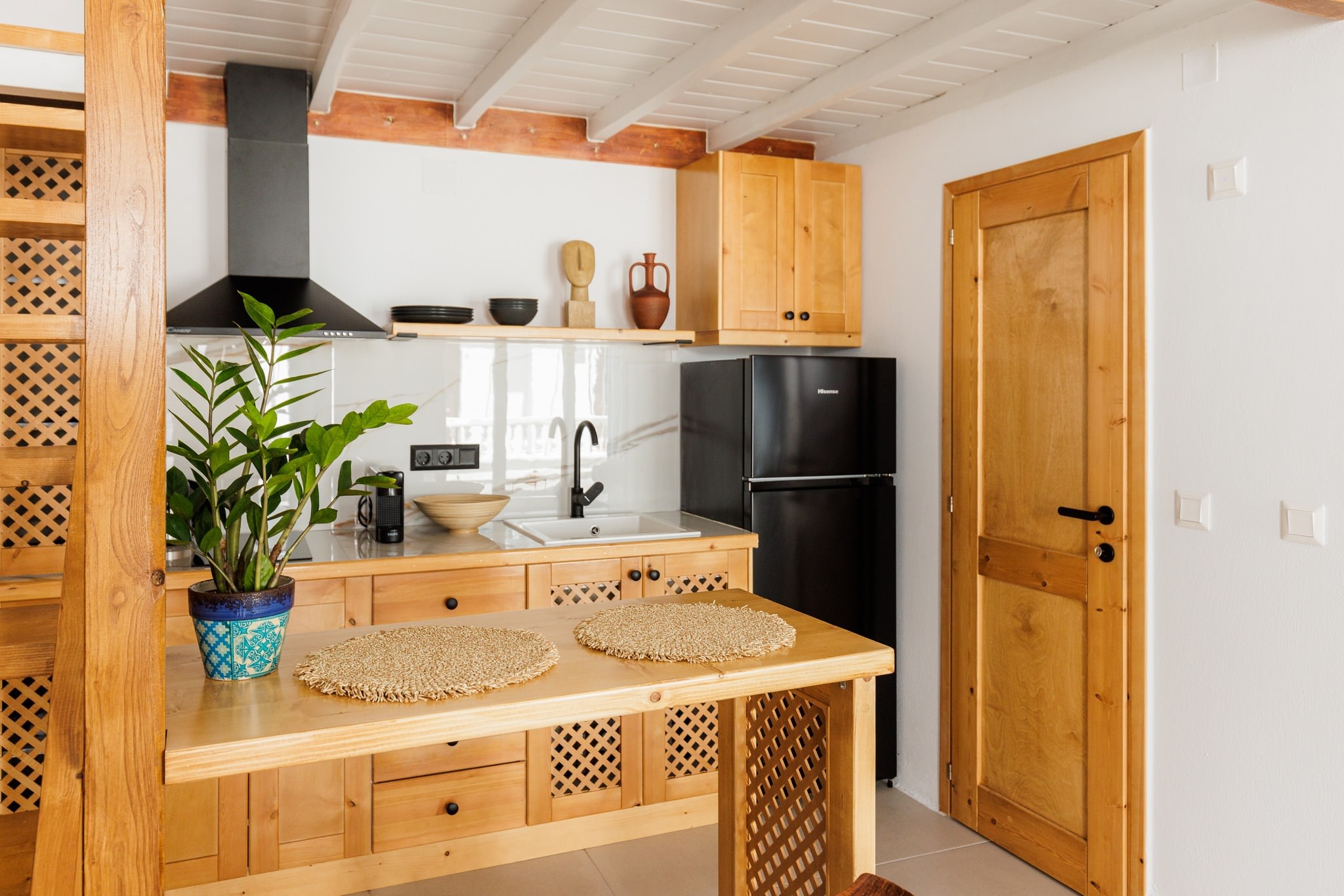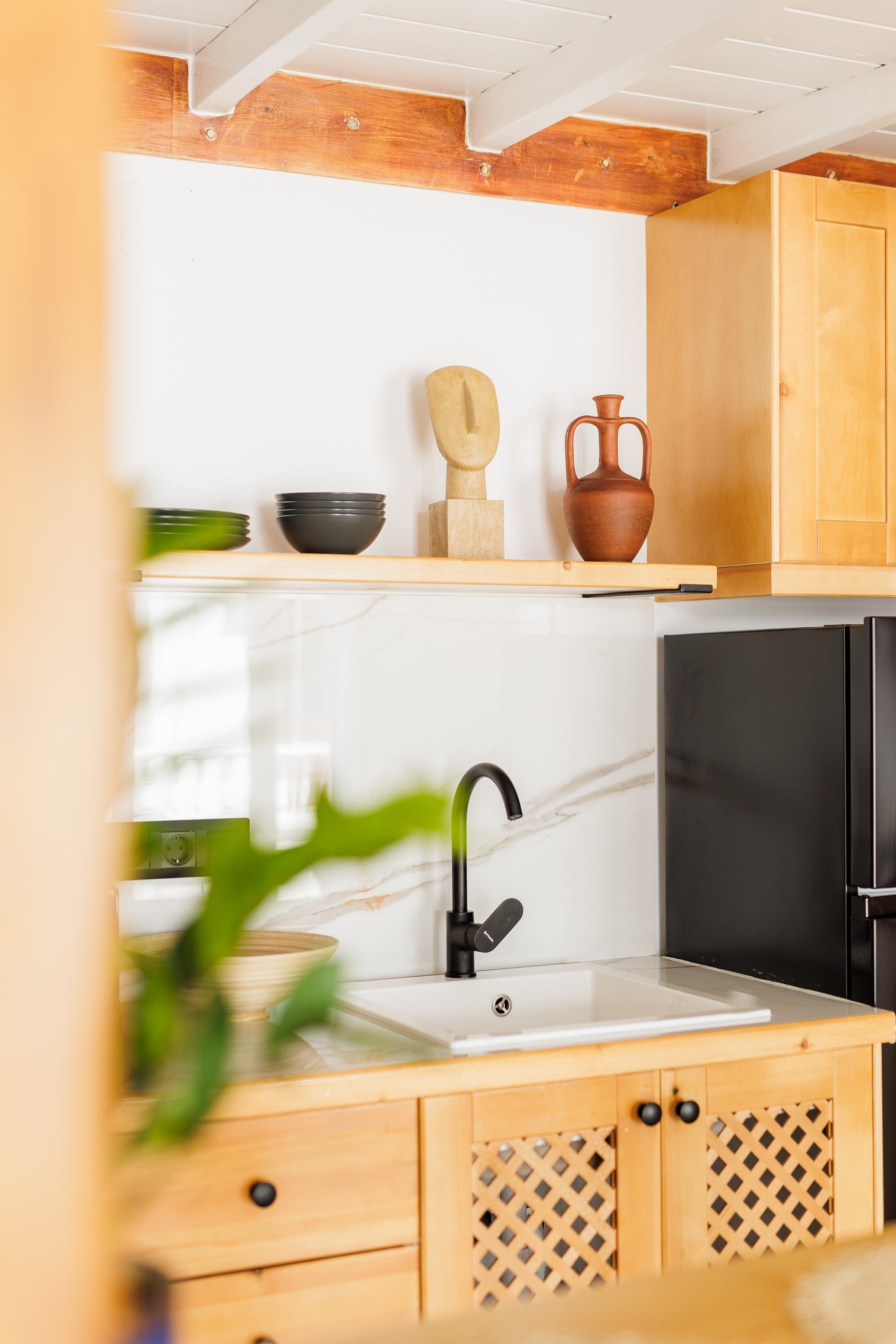 Το στούντιο των 34 τ.μ. ανακαινίστηκε πλήρως το 2023. Στο ισόγειο υπάρχει φωτεινός χώρος καθιστικού, μικρή κουζίνα πλήρως εξοπλισμένη με φούρνο, ψυγείο και καφετιέρα, καθώς και μοντέρνο μπάνιο με ντους. Εσωτερική σκάλα οδηγεί στον επάνω όροφο, όπου υπάρχει διπλό κρεβάτι που προσφέρει άνεση και ξεκούραση.