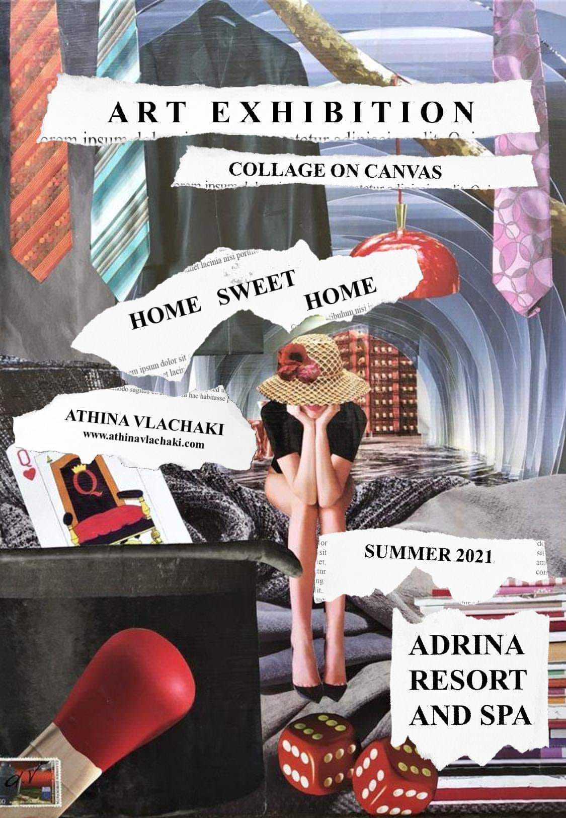 Όποιος ενδιαφέρεται να θαυμάσει το καλλιτεχνικό έργο “κολάζ σε καμβά” της Αθηνάς Βλαχάκη, το καλοκαίρι του 2021 θα πραγματοποιήσει έκθεση στο Adrina Resort and Spa Hotel.