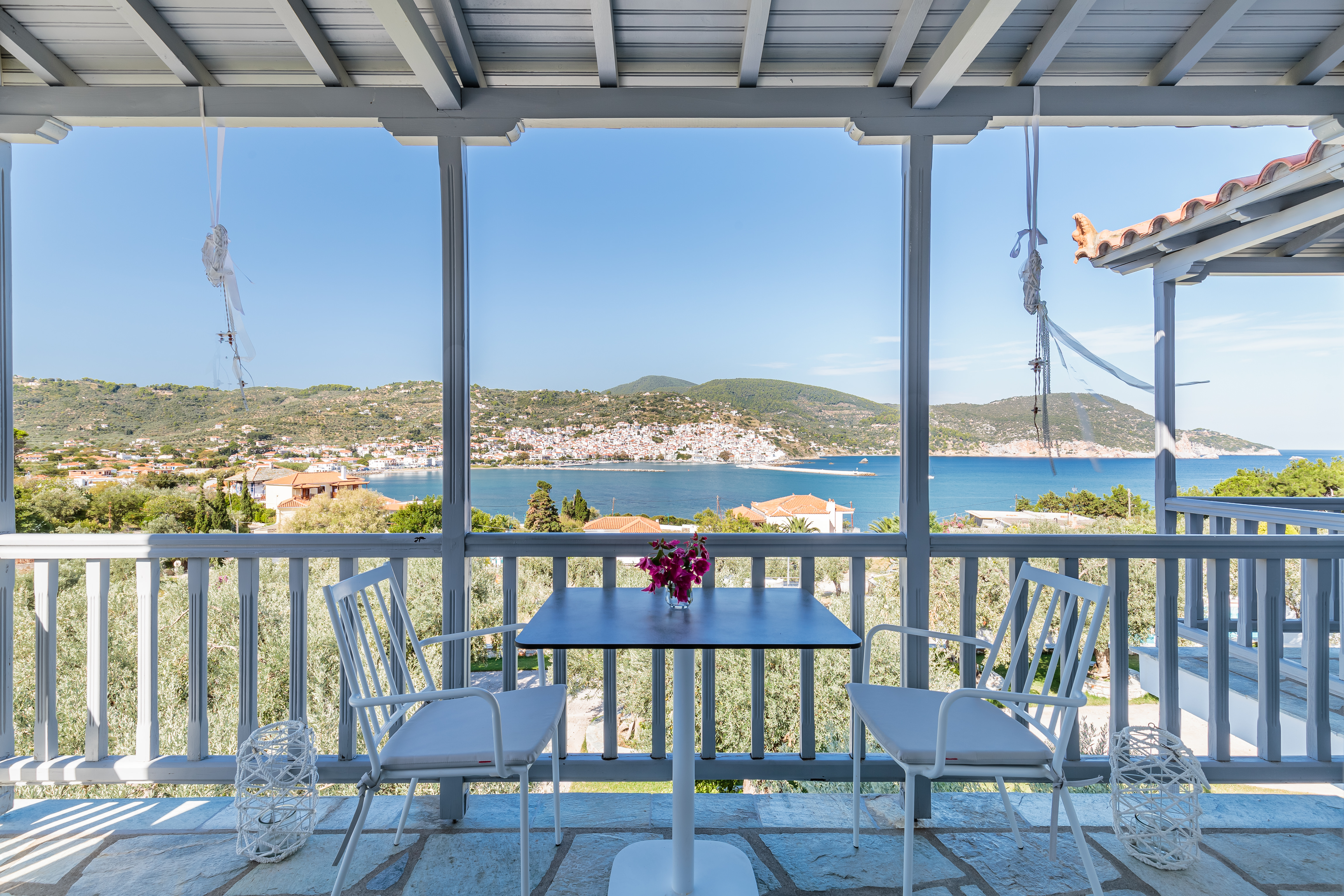 Οι εξωτερικοί μας χώροι διαθέτουν έπιπλα και ανέσεις για μια ευχάριστη διαμονή. Η θέα της καταγάλανης θάλασσας, της Χώρας της Σκοπέλου και του πανέμορφου κήπου μας θα σας μαγέψει. Η επιλογή σας να περάσετε τις διακοπές σας στον χώρο μας θα σας ανταμείψει πλήρως.