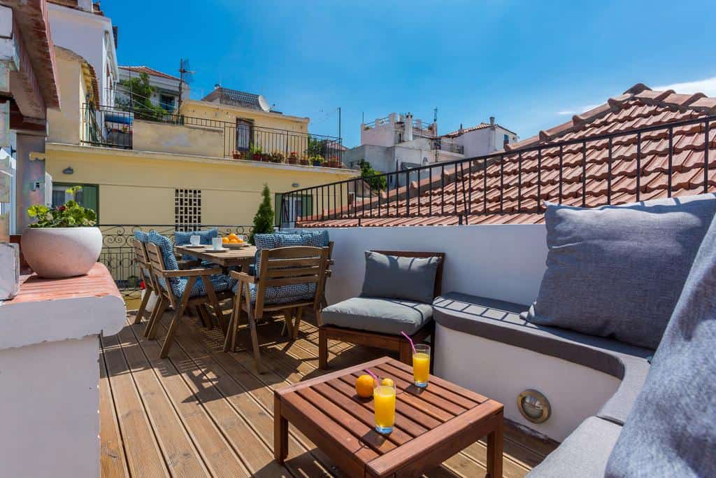 Στην βεράντα της εξοχικής κατοικίας μπορείτε να απολαύσετε στιγμές χαλάρωσης και διασκέδασης. Ενώ στον εξωτερικό χώρο έχετε την δυνατότητα να διοργανώσετε μπάρμπεκιου. Οι παροχές της Villa (Βίλα) Ευαγγελία στην χώρα της Σκοπέλου σας προσφέρουν μία άνετη κι ευχάριστη διαμονή.