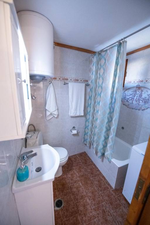 Moreover, the house comes with air conditioning and a fully equipped kitchen, with all the modern amenities such as a dining table, stovetop, oven, kitchenware, washing machine, and refrigerator. There are also two bathrooms, each on every floor.
