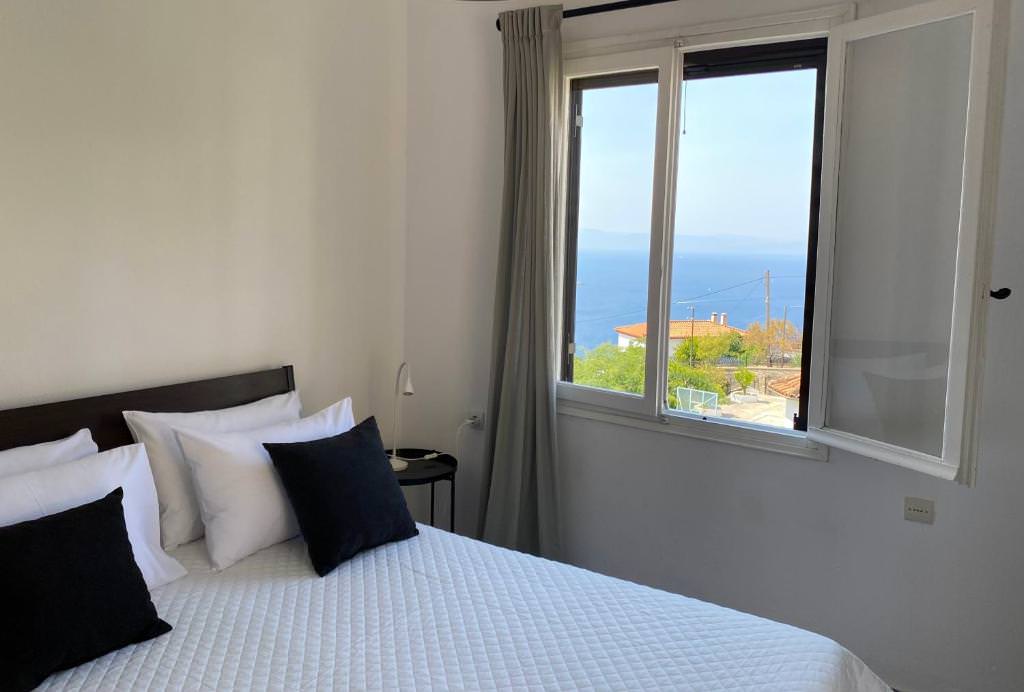 The house can accommodate up to 6 people. It also provides a quiet courtyard and balconies in the bedrooms with a beautiful view. Glossa is also called the balcony of Skopelos and is very close to the unspoiled beaches of the island’s north side and the cosmic beaches (distance by car 10 minutes). Some beaches are Perivoliou, Aggeletou, Leni, Pethamenis, Hondrogiorgi, Mari, and Agios Ioannis, perfect for swimming and relaxation amidst breathtaking scenery.