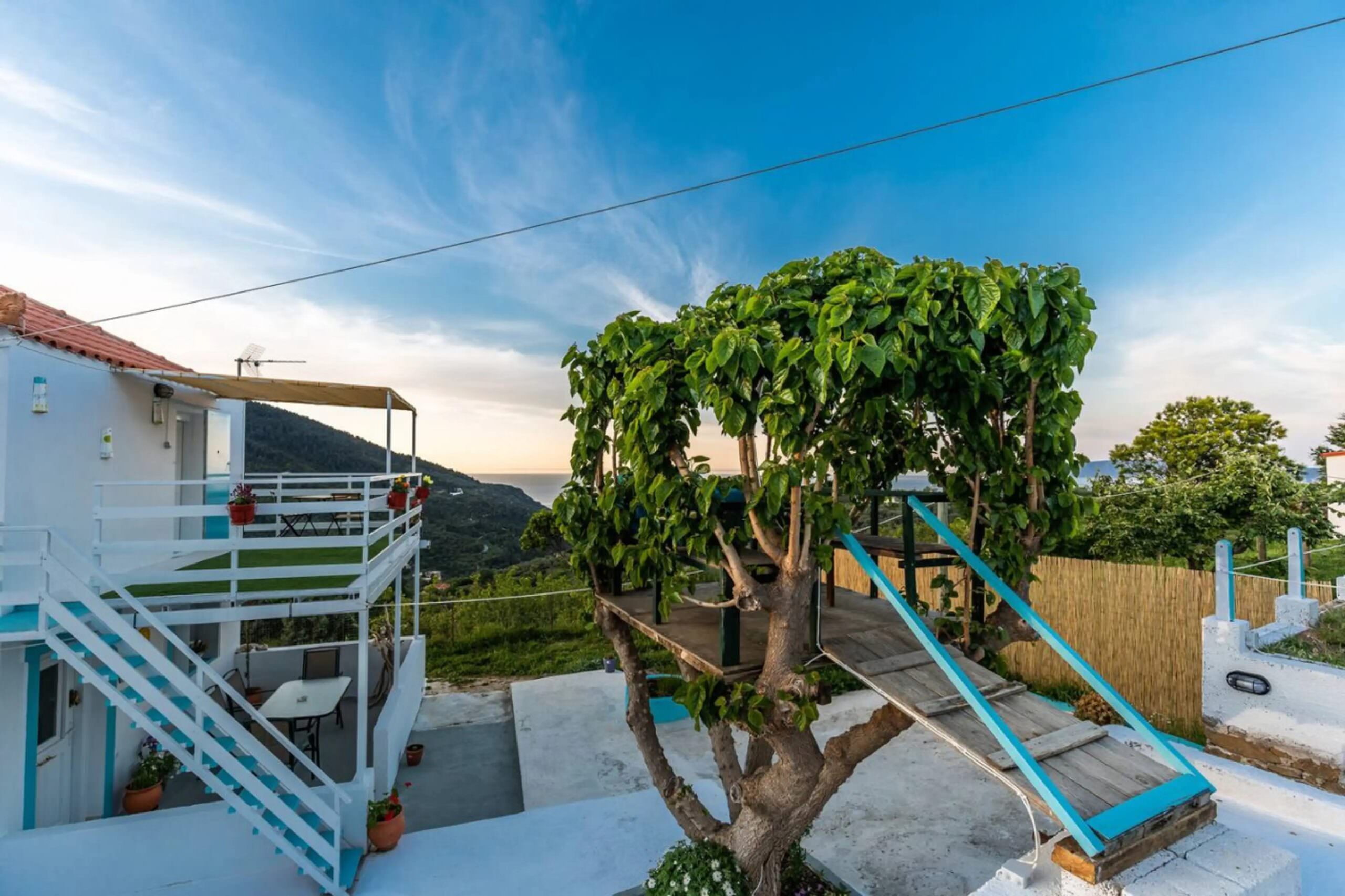 Pastalia Cottage is a charming two-floor home with a tree house, balcony, and patio, just 4 km from Skopelos Port