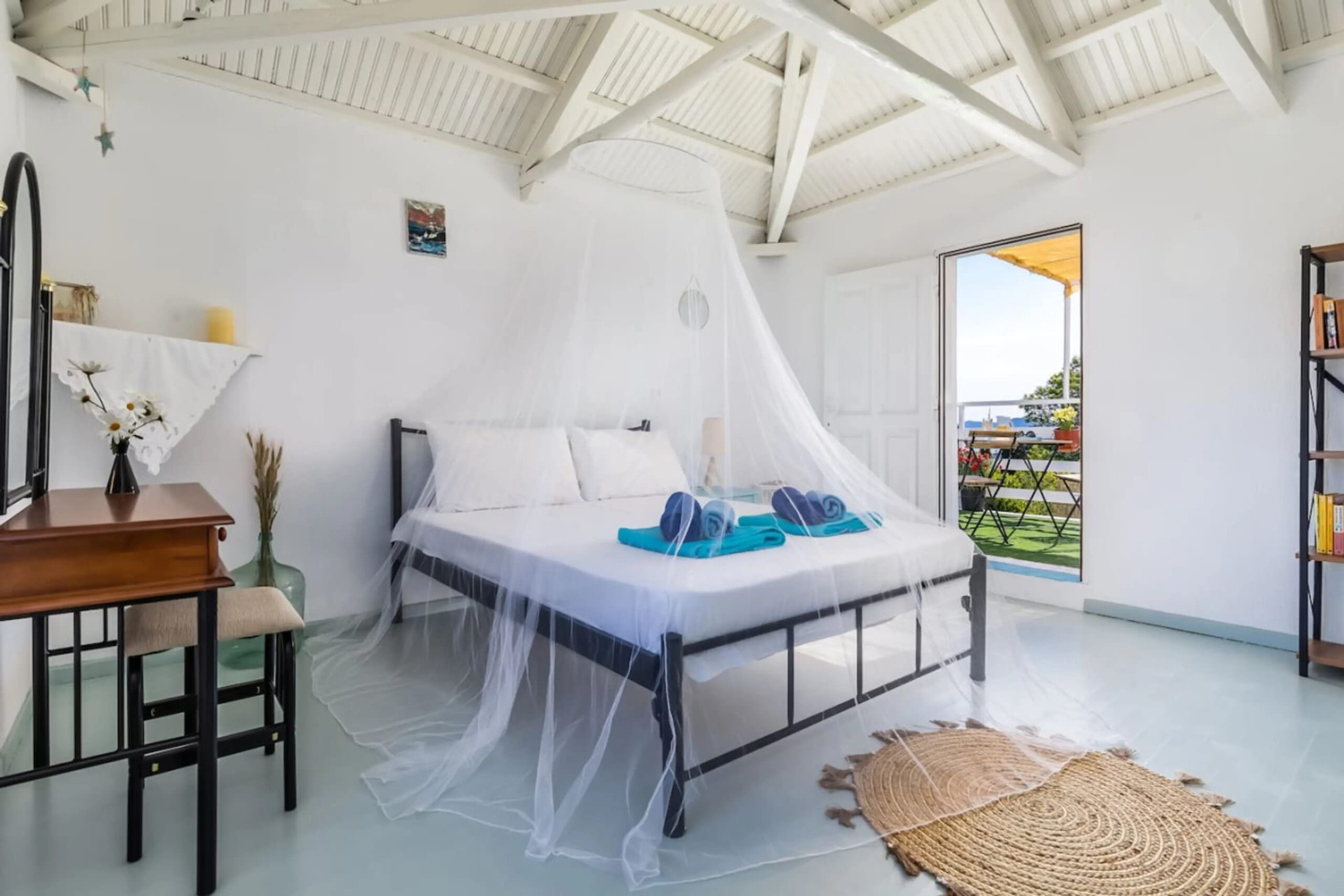 The upper floor, accessible from inside the house or directly from the garden, includes a comfortable bedroom with a king-size bed and a wardrobe. Step out onto the balcony for morning coffee or unwind on the ground-floor patio in the evenings. From the upper garden, you can reach the tree house, a perfect spot for sunset viewing or stargazing.
